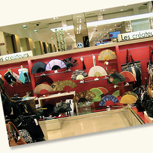 I nostri fan si trovano nello spazio “French Designers” all'ingresso dei grandi magazzini Boulevard Hausmann e in tutte le Galeries Lafayette in Francia.